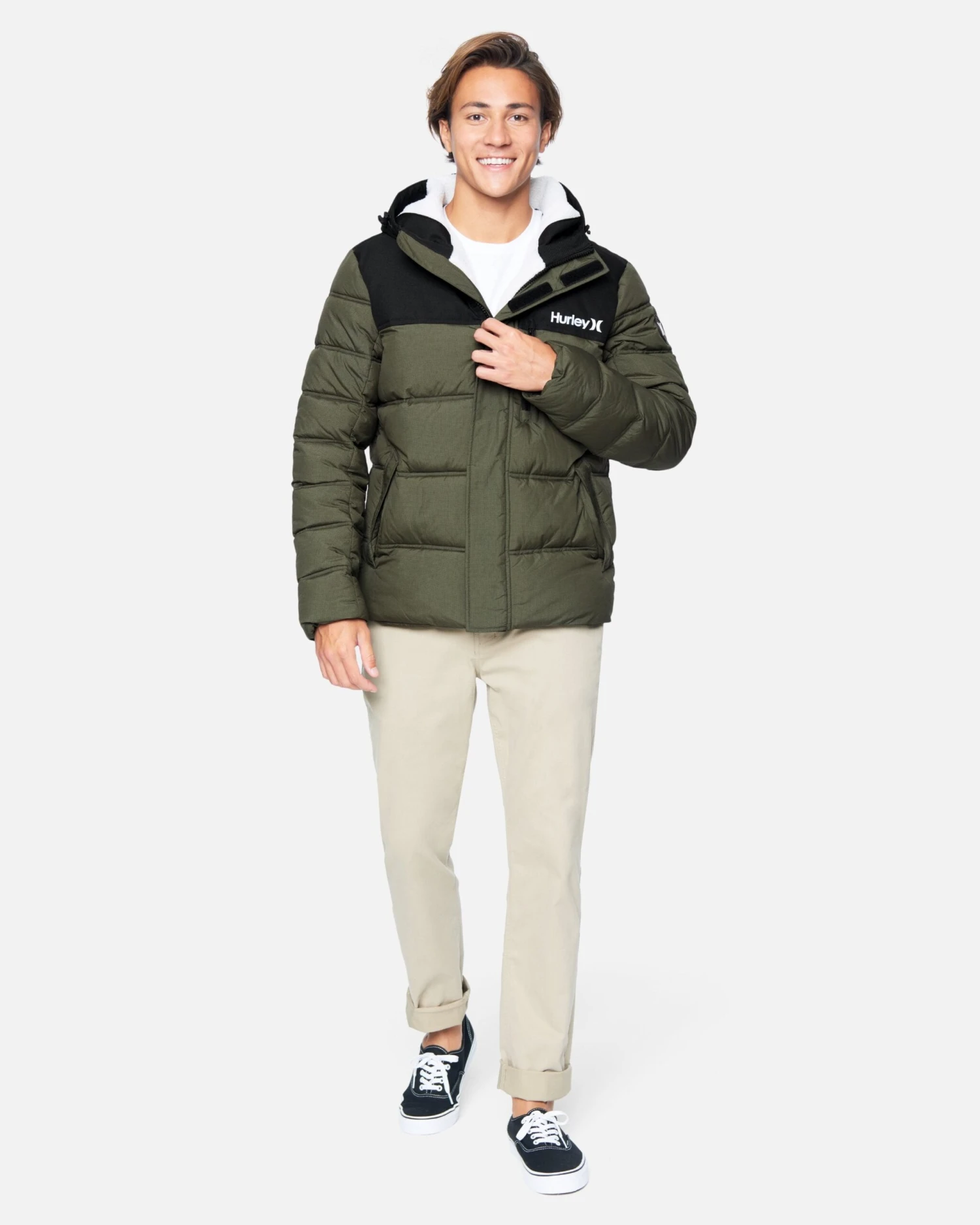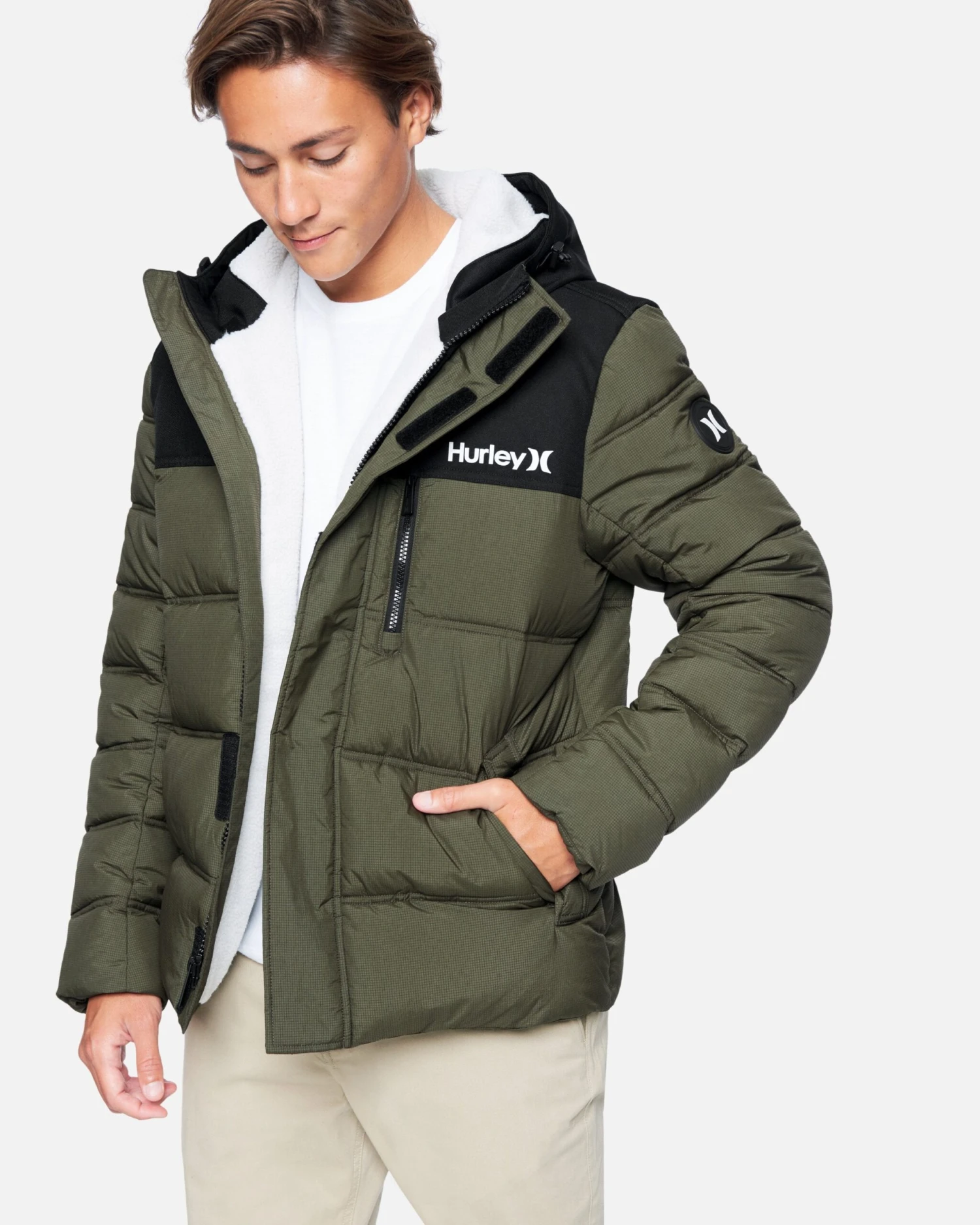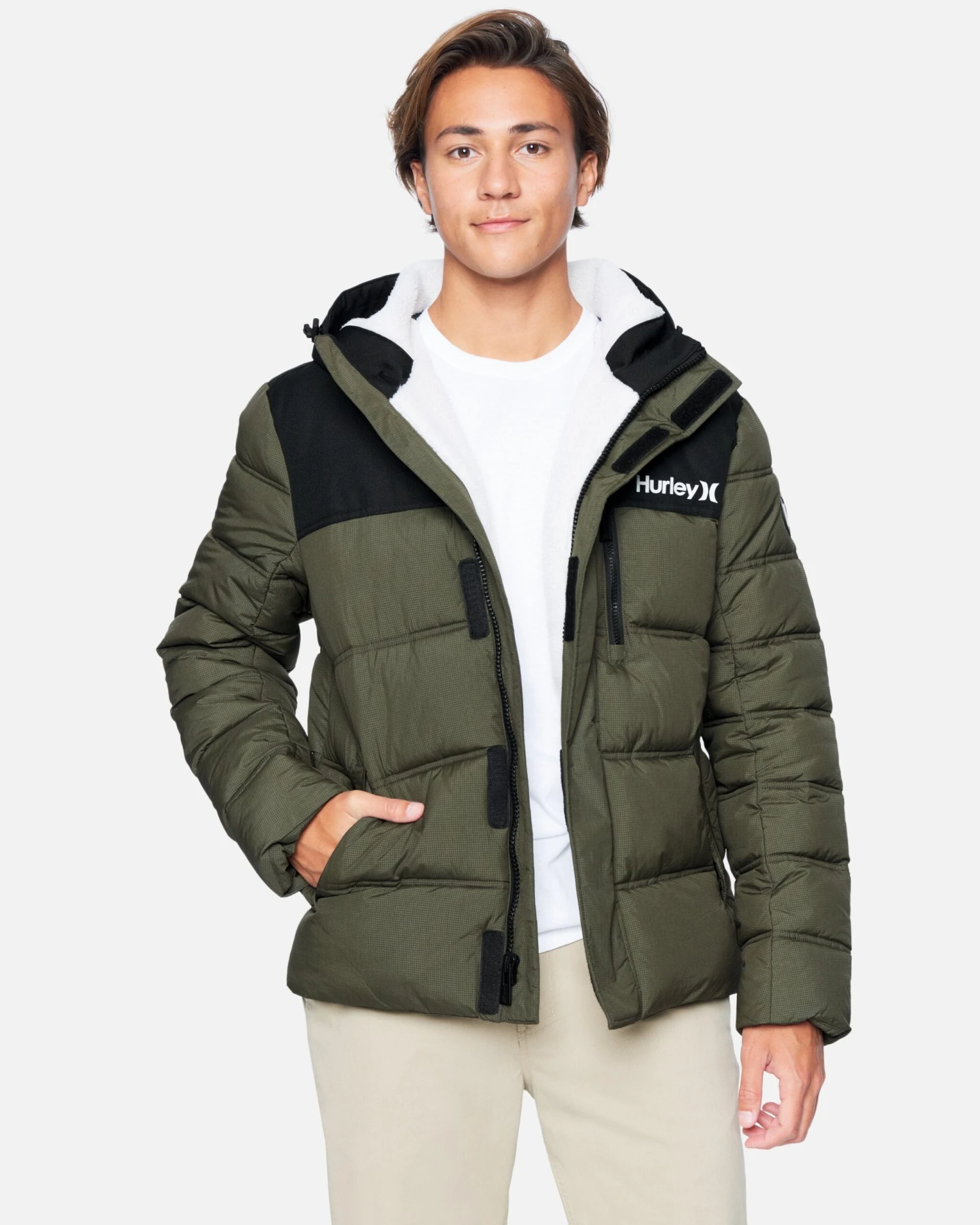 Made with the Alaskan climate in mind, you could say that The Barrel 2.0 Puffer Jacket is warm. A water resistant polyester outer, a 100% sherpa lined hood, and 3m featherless thinsulate keep you dry and warm (emphasis on warm), while interior glove and hat pockets and outer, zippered pockets provide ample, secure storage.
