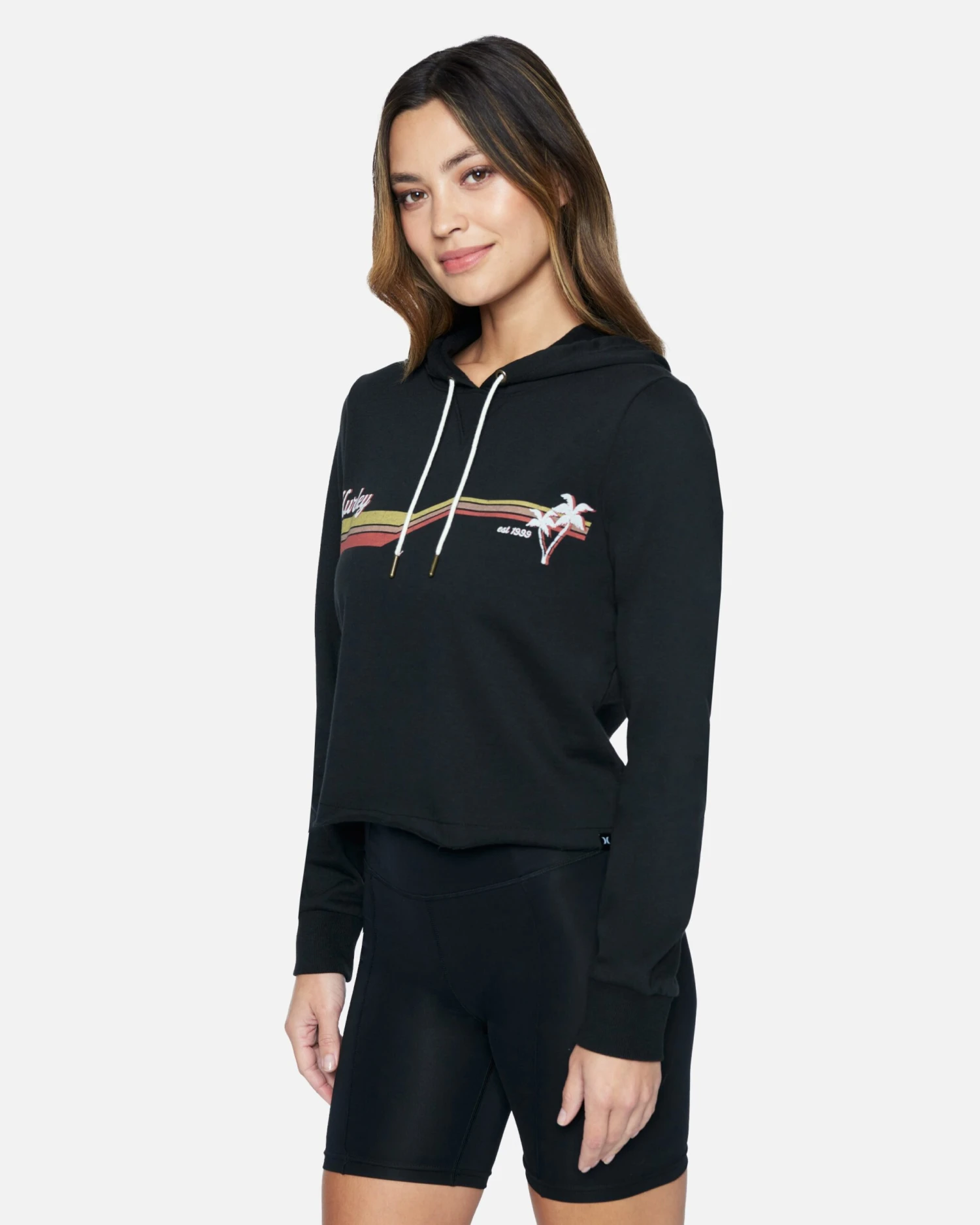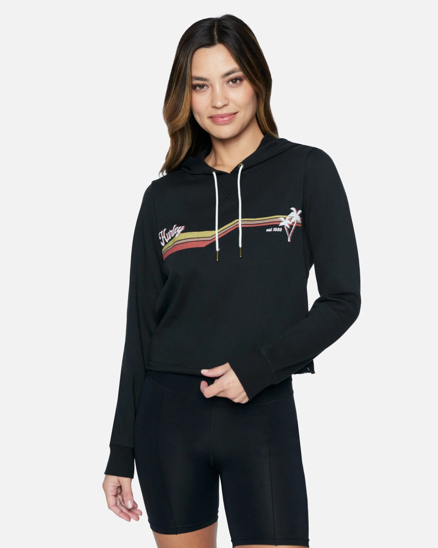 Keep it vintage-ish in the Retro Palm Cut Off Hoodie, a cropped raw edge hoodie that is big on vibes and coziness.