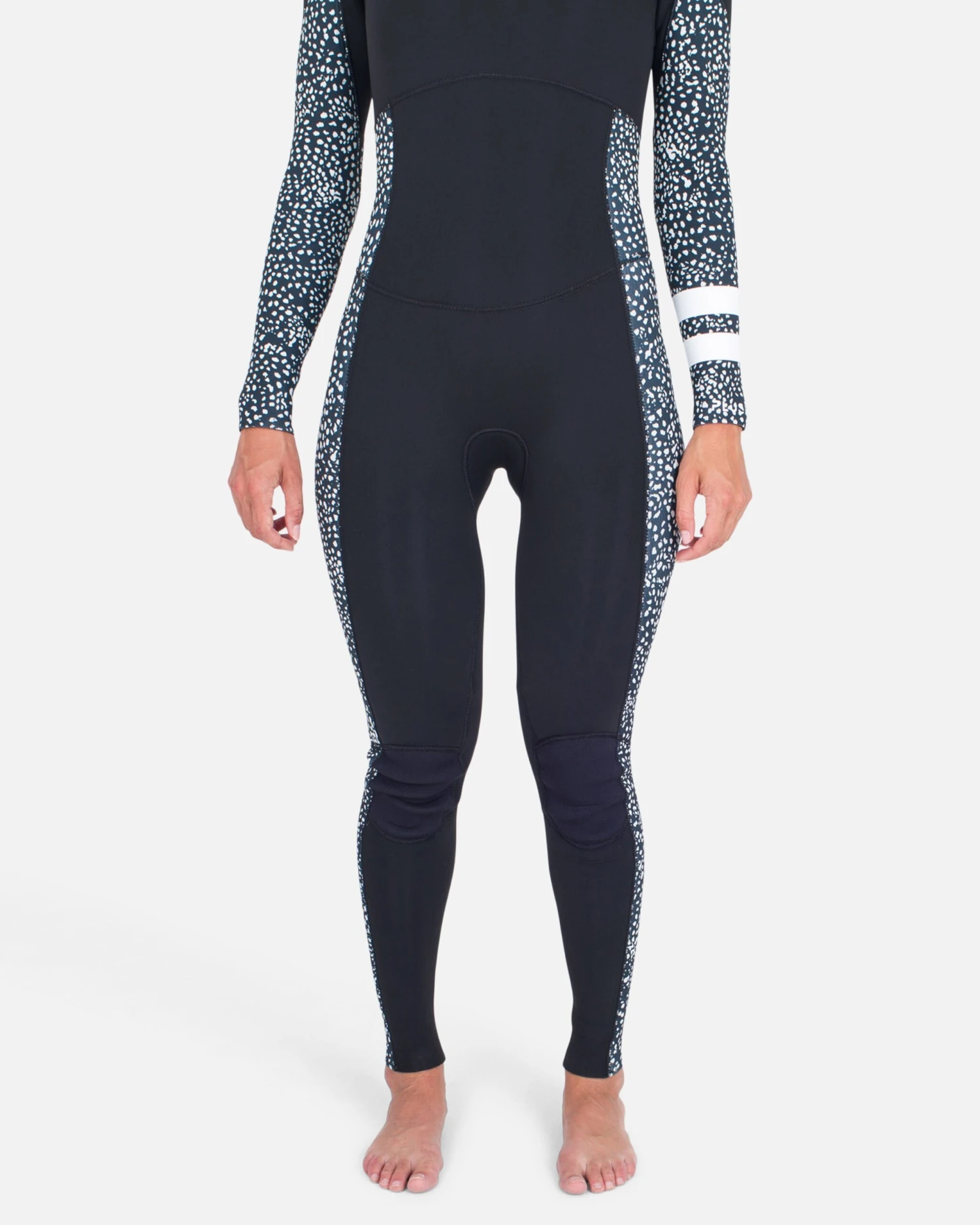 Take on the cold without sacrificing comfort in The WOMENS PLUS PRINTED 4/3MM FULLSUIT. Made with New superstrech neospan exterior material, it’s our most flexible suit — and sustainable, too. Created using eco friendly processes and recycled materials, this wetsuit was made with the planet in mind. With 100% taped seams, it keeps water out while adding longevity to your suit. The insulated interior keeps you toasty during cold water sessions and is also quick drying — that way it’ll be nice and dry for your next session.